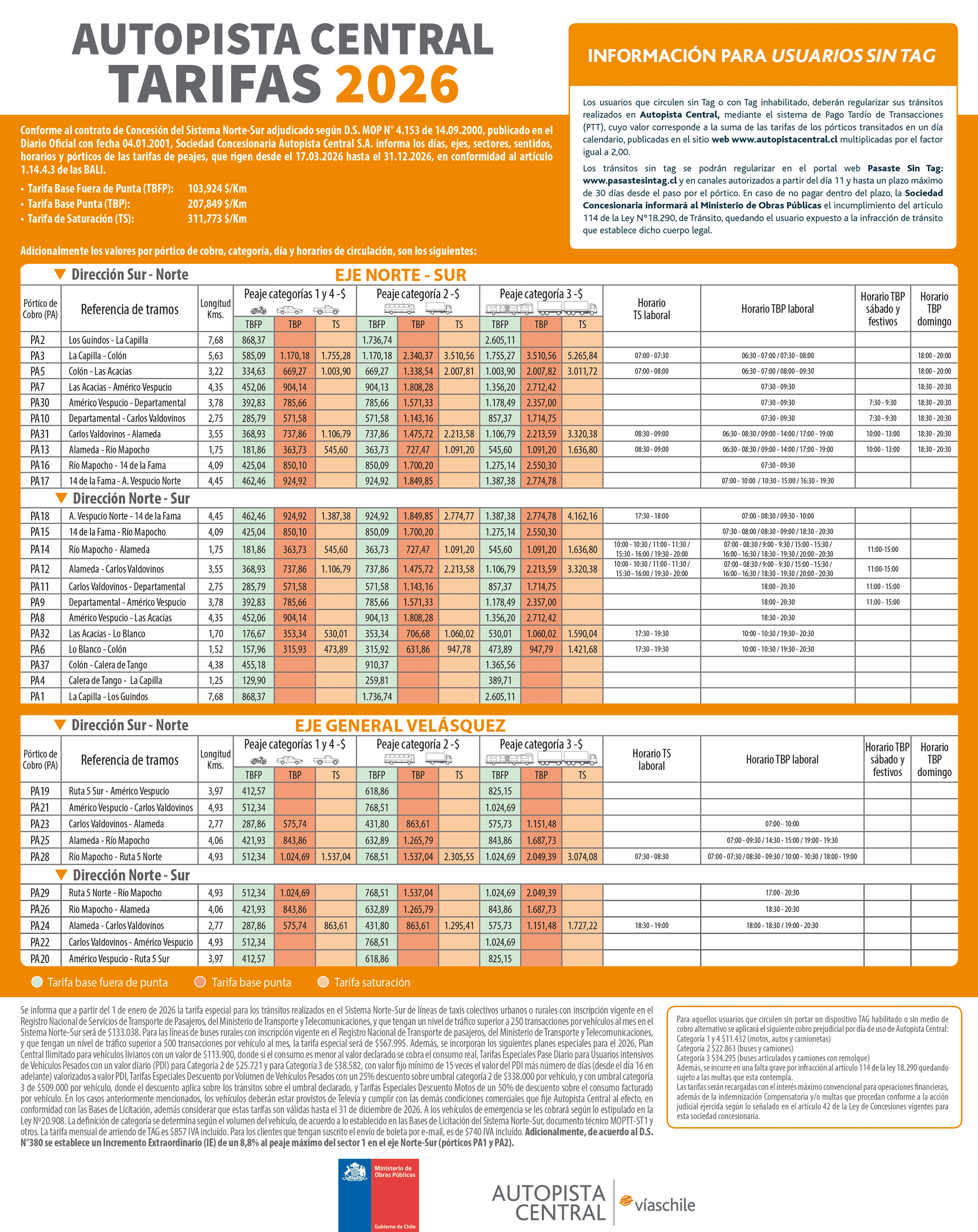 TARIFAS Autopista Central