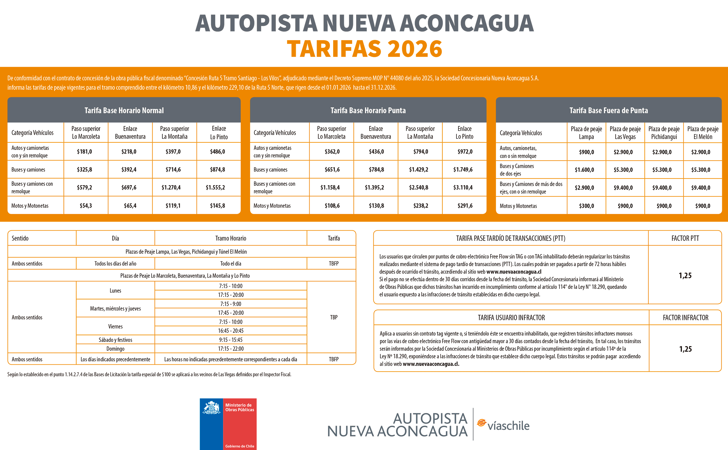 TARIFAS Autopista Nueva Aconcagua